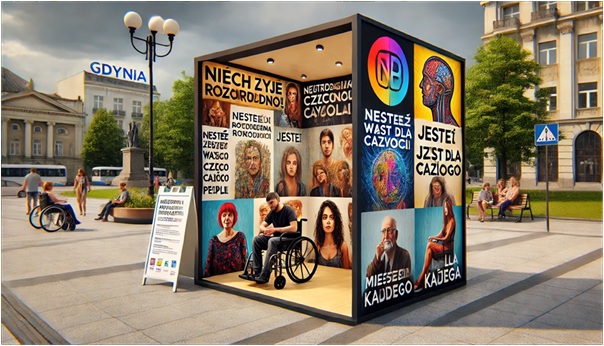 Projekt zatytułowany „Niech żyje różnorodność!” zakładał stworzenie otwartej, interaktywnej przestrzeni złożonej z wolnostojących tablic informacyjno-prezentacyjnych, ustawionych w formie okręgu lub wielokąta. Na zewnątrz planowano umieścić hasła promujące tolerancję, empatię i wiedzę o dostępnych formach wsparcia psychologicznego w Gdyni. Wewnątrz – fotografie i krótkie historie osób po kryzysach psychicznych, neuronietypowych, z niepełnosprawnościami, ale też tych uznawanych za „typowe”.